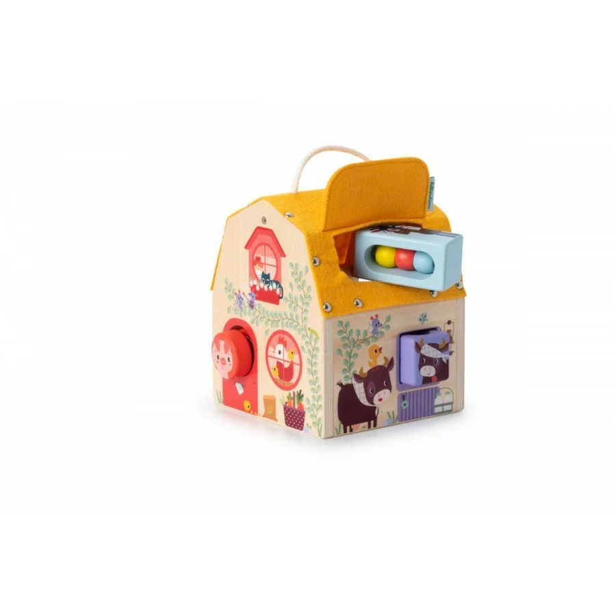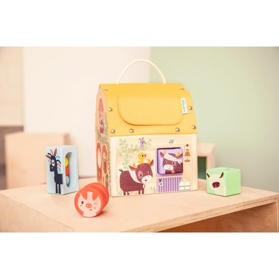C’est la fête à la ferme. Aide les animaux à entrer dans la maison en associant les formes et les couleurs. Chaque animal a une forme et un son différent. Un régal pour les mains, les oreilles et le cerveau de votre enfant. Cette maison permet de former l’ouïe (4 sons différents), la vue et la réflexion !