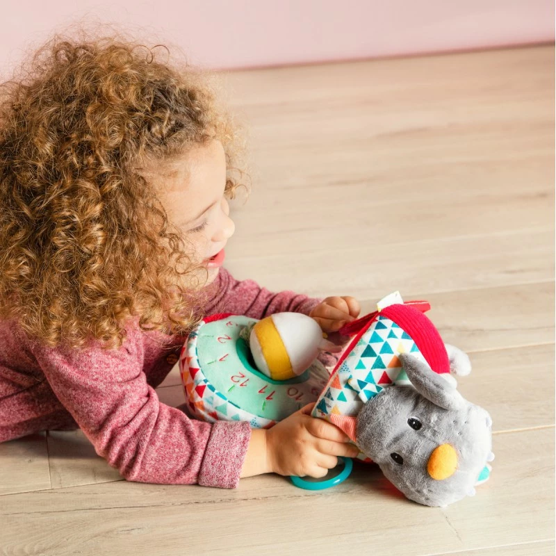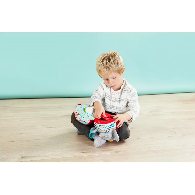 Ce jouet d’éveil stimule les sens de Bébé avec toutes sortes de sons, de textures et de formes. Nicolas accompagnera votre enfant dans ses premières découvertes et le surprendra avec les formes qu’il cache dans sa bouche et son ventre. Ce jouet d’éveil l’aidera à appréhender et reconnaître les formes, puis à les remettre à leur place. Les sons agréables et les textures de cette peluche stimulent les sens de l’enfant. Bébé pourra se découvrir dans le miroir caché dans la bouche de Nicolas ou encore mordiller l’anneau de dentition qui se trouve autour de son petit bras.