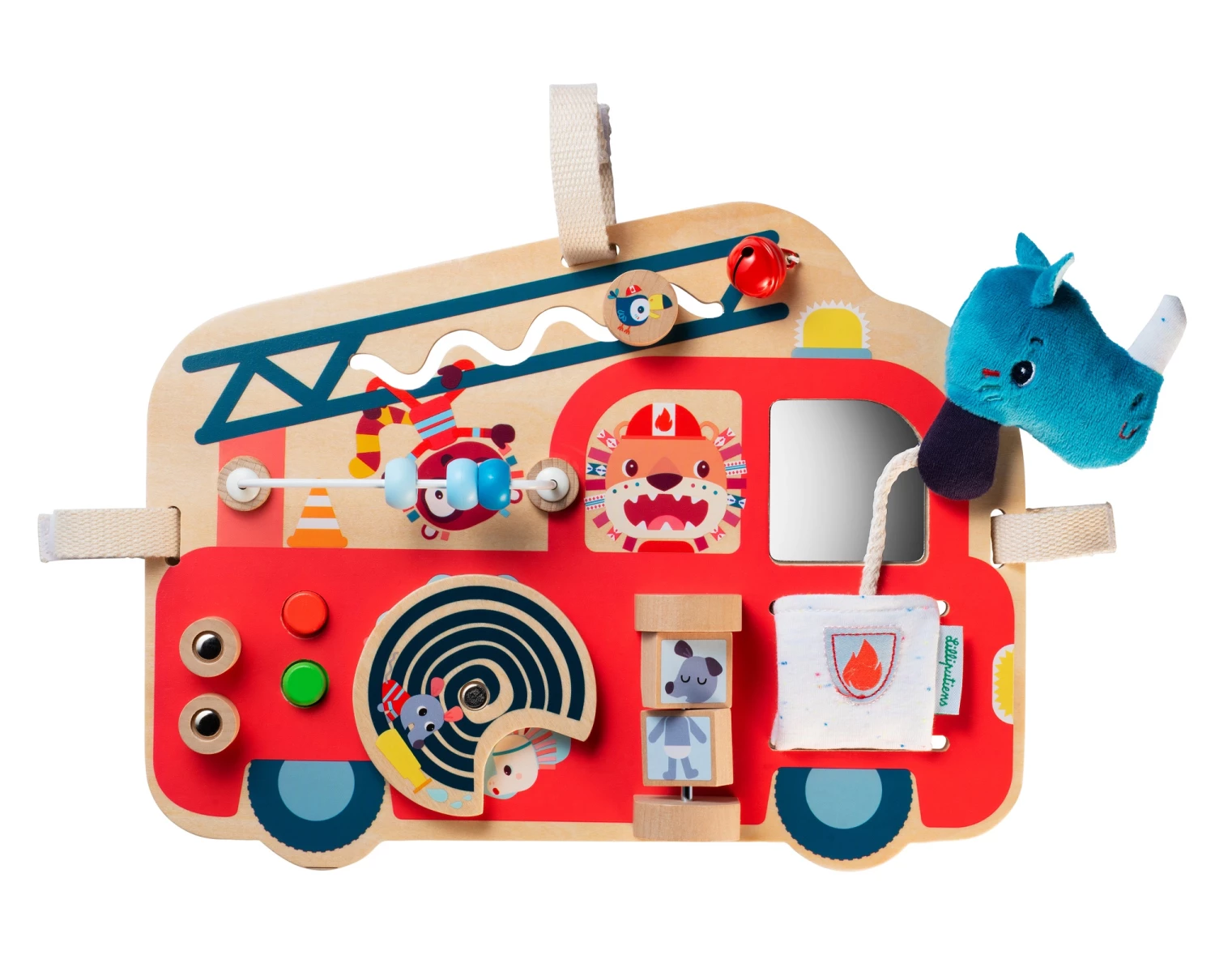 Découvrez le panneau d’éveil Camion de pompier de la marque Lilliputiens.