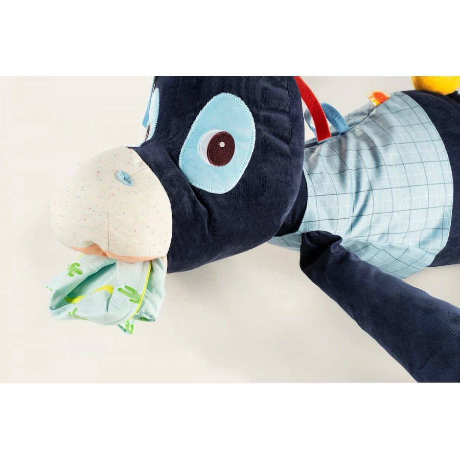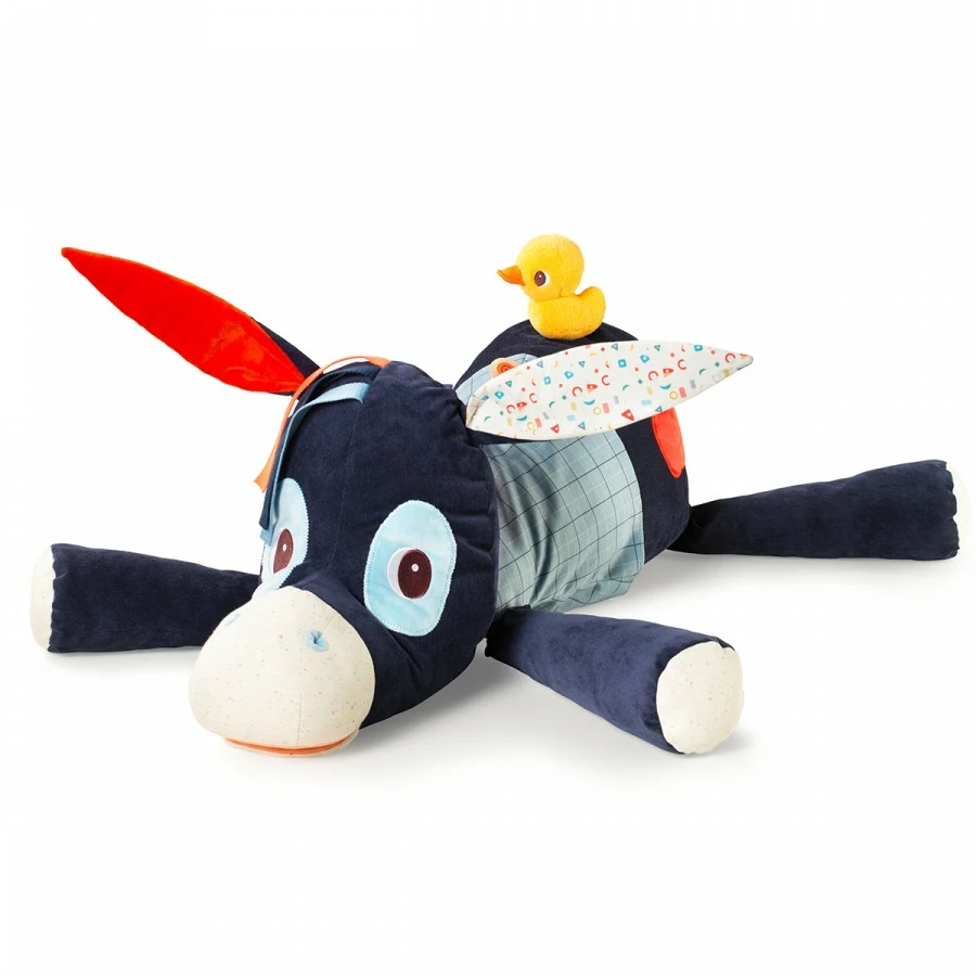 Ignace l’âne et son ami le caneton se reposent tranquillement dans le prĂ©. Son corps offre une multitude d’activitĂ©s surprenantes. Pssst… Cache ton pyjama ou tes petits secrets dans sa grande bouche.