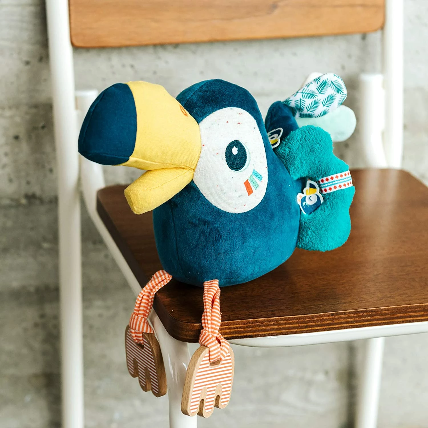 Toucan multi-activités, une peluche d’éveil de la marque Lilliputiens. Réf 83268